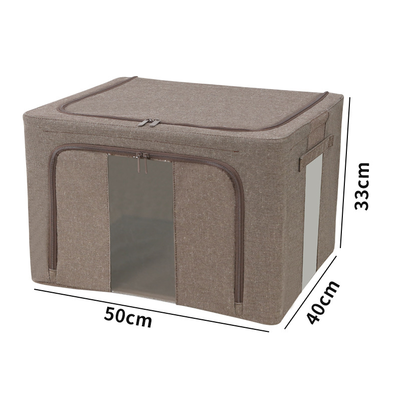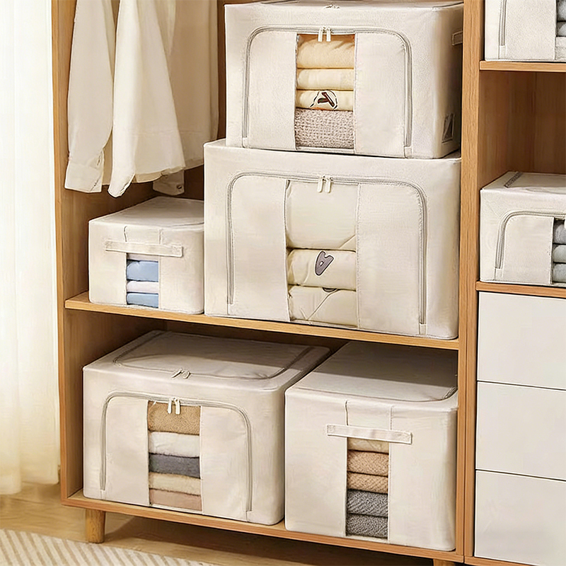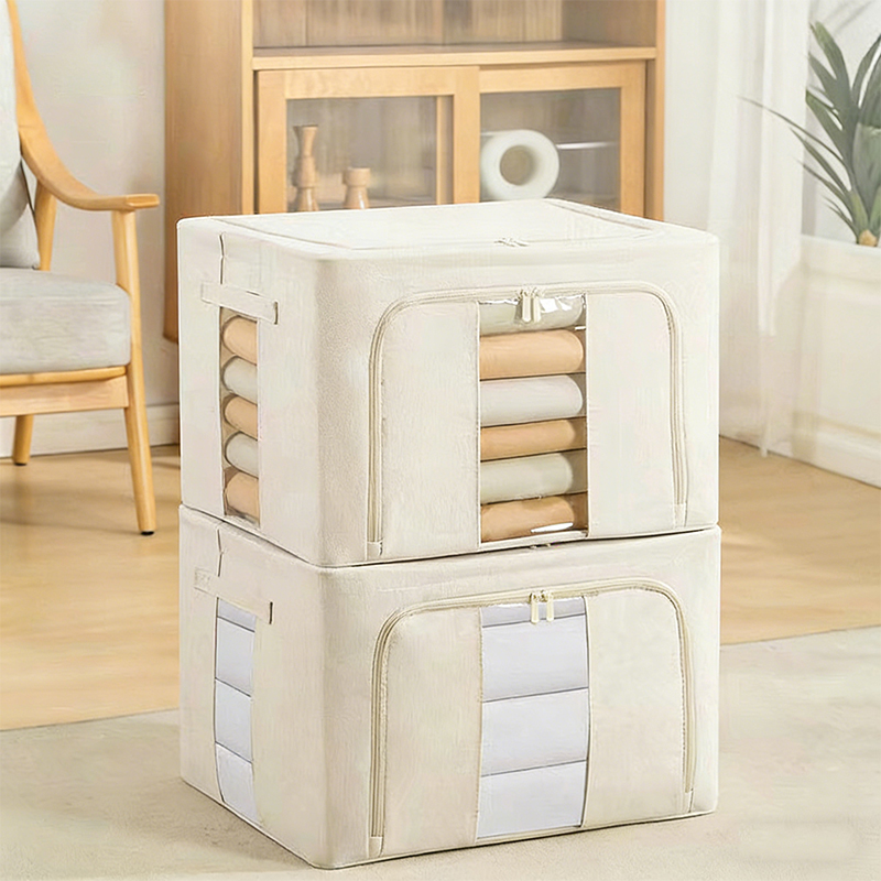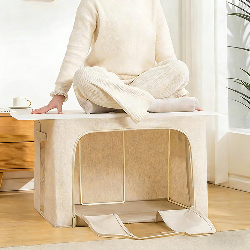 Die Box ist auf Langlebigkeit ausgelegt und besteht aus hochwertigem Tianshan-Baumwoll- und Leinenmaterial, das dick, langlebig und sanft zur Kleidung ist. Der Stoff ist außerdem staubdicht und feuchtigkeitsbeständig, sodass er sich für die Langzeitlagerung eignet und Ihre Sachen vor Schimmel oder Mehltau schützt. Ein verstärkter verzinkter Stahlrahmen hilft der Box, ihre Form und Stabilität über einen längeren Zeitraum beizubehalten.